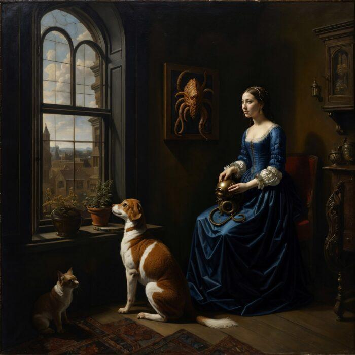 Intérieurs flamands Posté le 27 février 2024 De mystérieux intérieurs où l’on croise des femmes en toilettes, des chats et autres animaux irréels, des espaces ambigus…